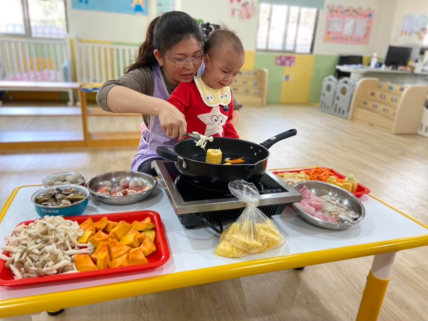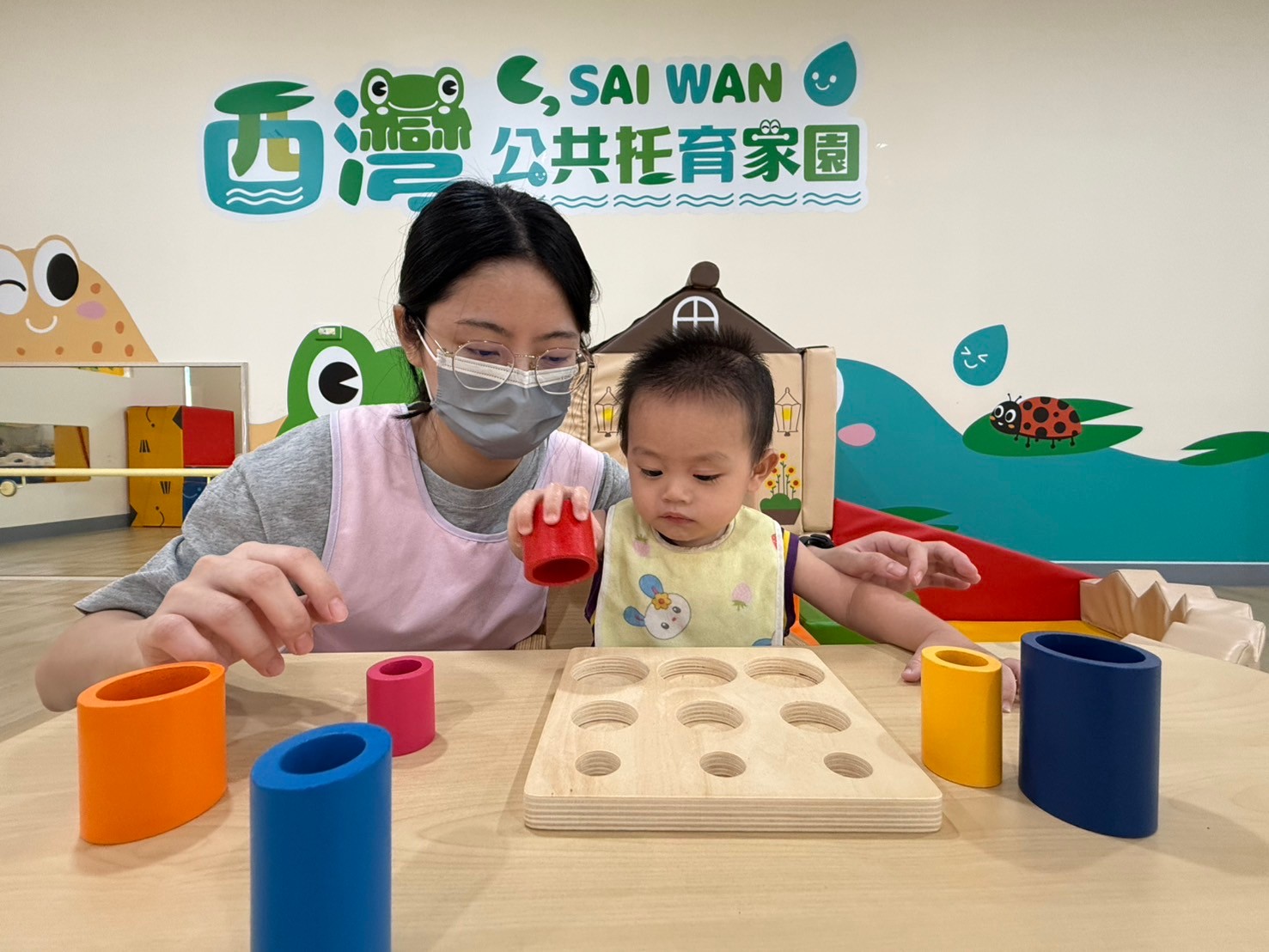托本市0-2歲嬰幼兒,提供學習活動及遊戲,協助嬰幼兒完成各階段之發展,並依其個別需求提供下列服務: