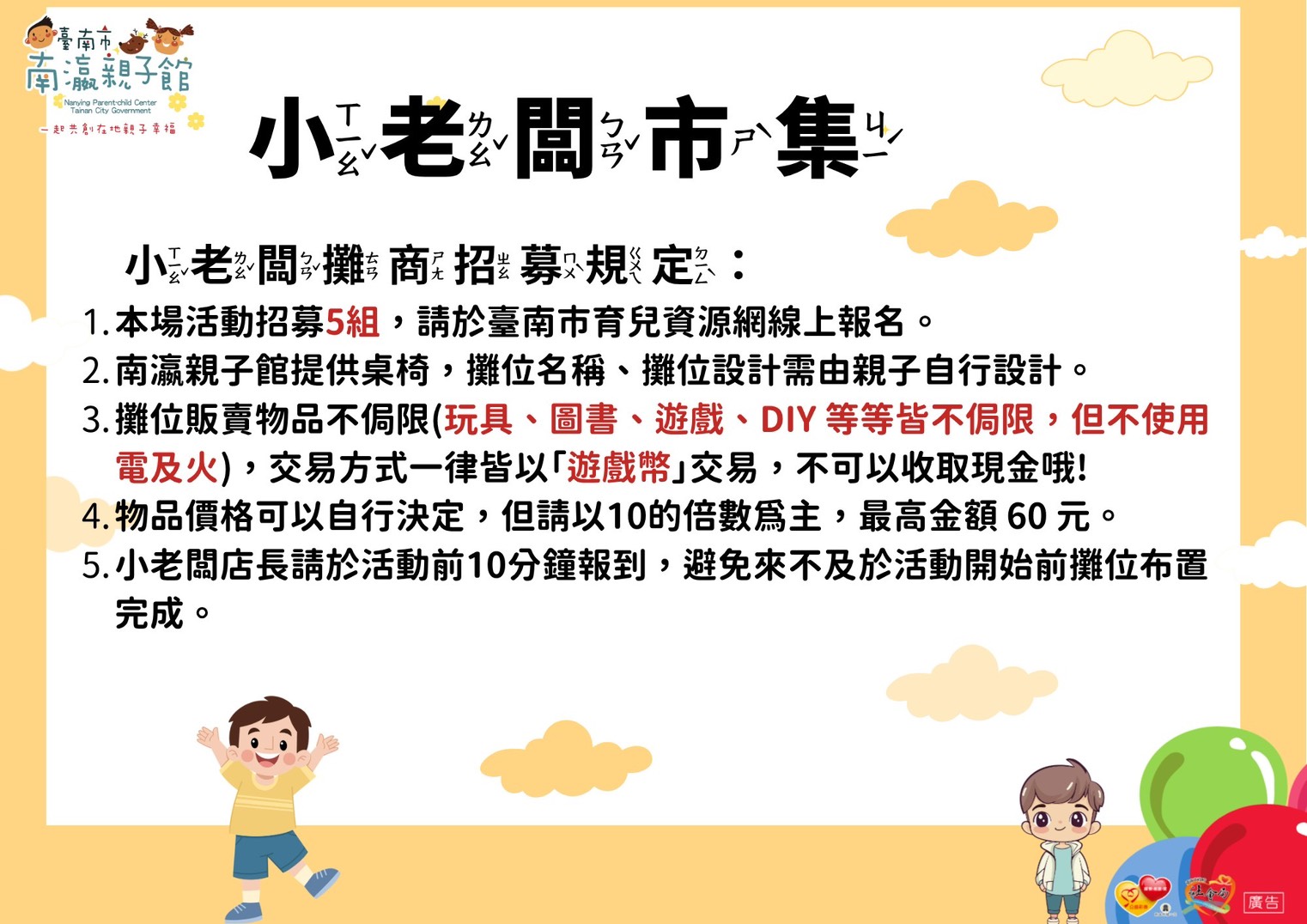 學甲外展服務-小老闆市集 (1.5歲-未滿7歲)★當小老闆即可參加當天的活動,不用重複報名活動!