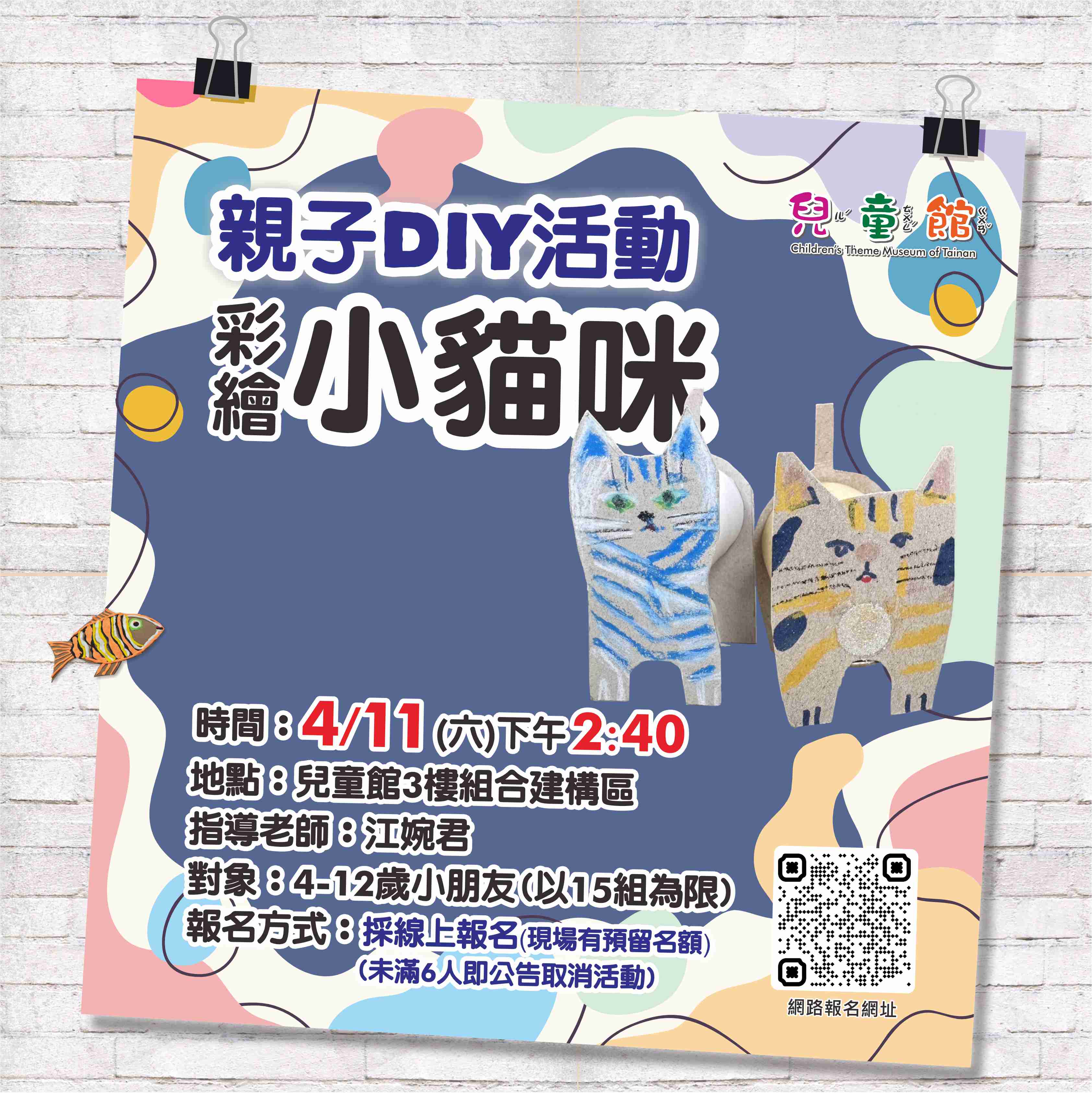 *此親子活動免材料費,報名額滿為止;名額有限,報名後若不克前往請來電告知或線上取消。